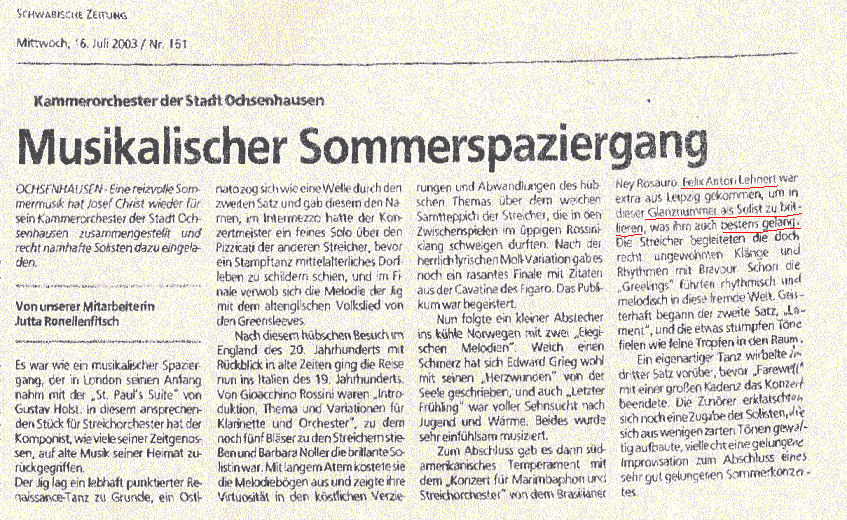 Schwäbische Zeitung 16. Juli 2003 | |||