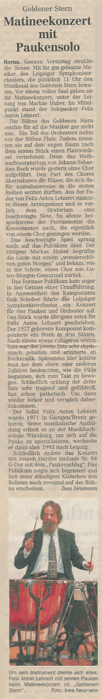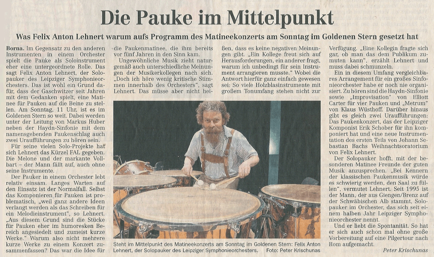 Felix Anton Lehnert ist Solopauker des Leipziger Symphonieorchesters und spielt als Gast in vielen Orchestern.